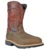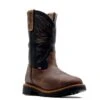 With 11 inches in height you have plenty of ankle protection with these met guard boots. The western style would easily fool any dinner date, so who would ever know that you didn’t change your work boots before meeting up. The rugged look is a perfect complement for the features on the composite safety toe boots: Durable leather protects your men’s footwear from abrasions and hazards found in outdoor work environments, and Ariat’s own Waterproof PRO technology keeps your feet protected from the hazards as well. You can end your day with your feet feeling as comfortable and dry as when you started with these pull-on work boots. The classic western design on the uppers gives this pair a cowboy flair while the cutaway style top and leather finger pulls make them easy to get on and off.